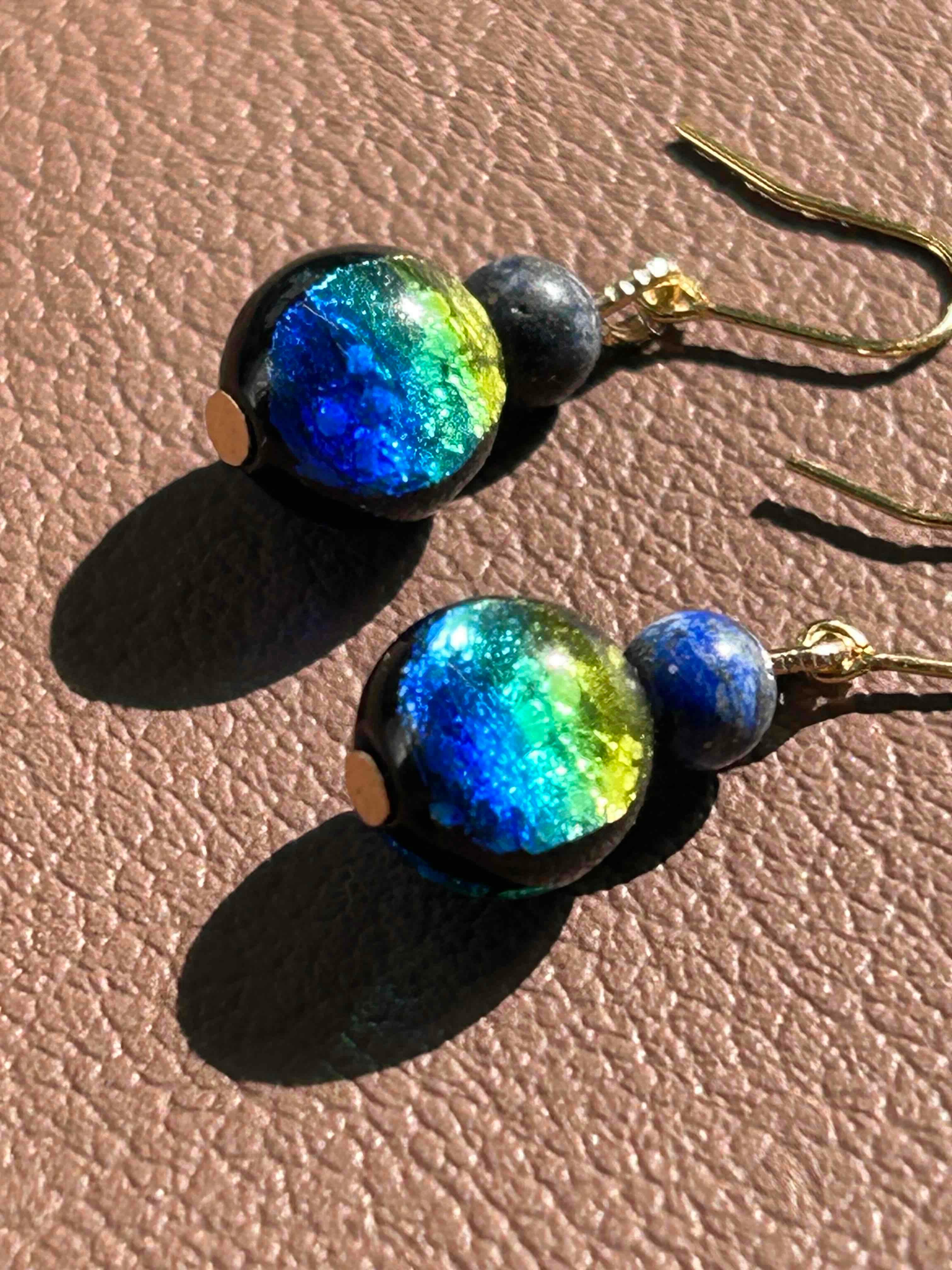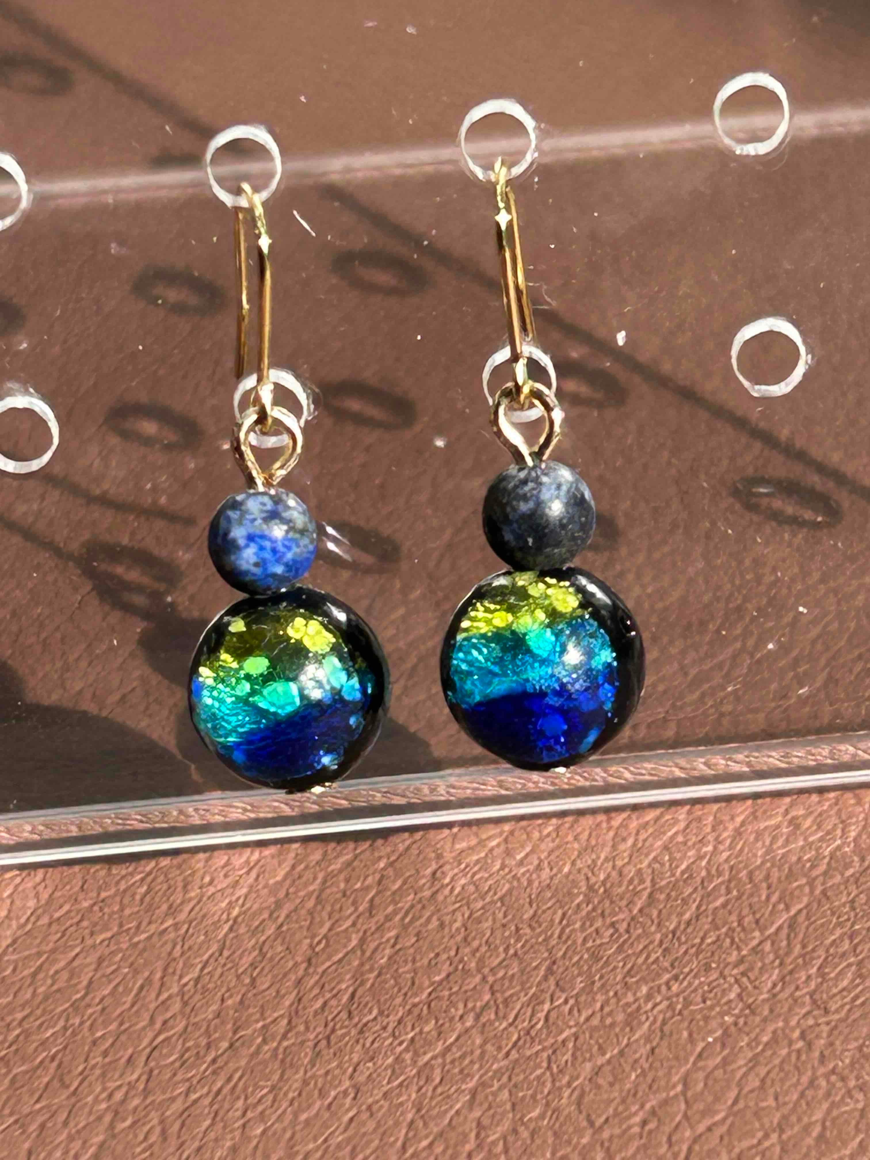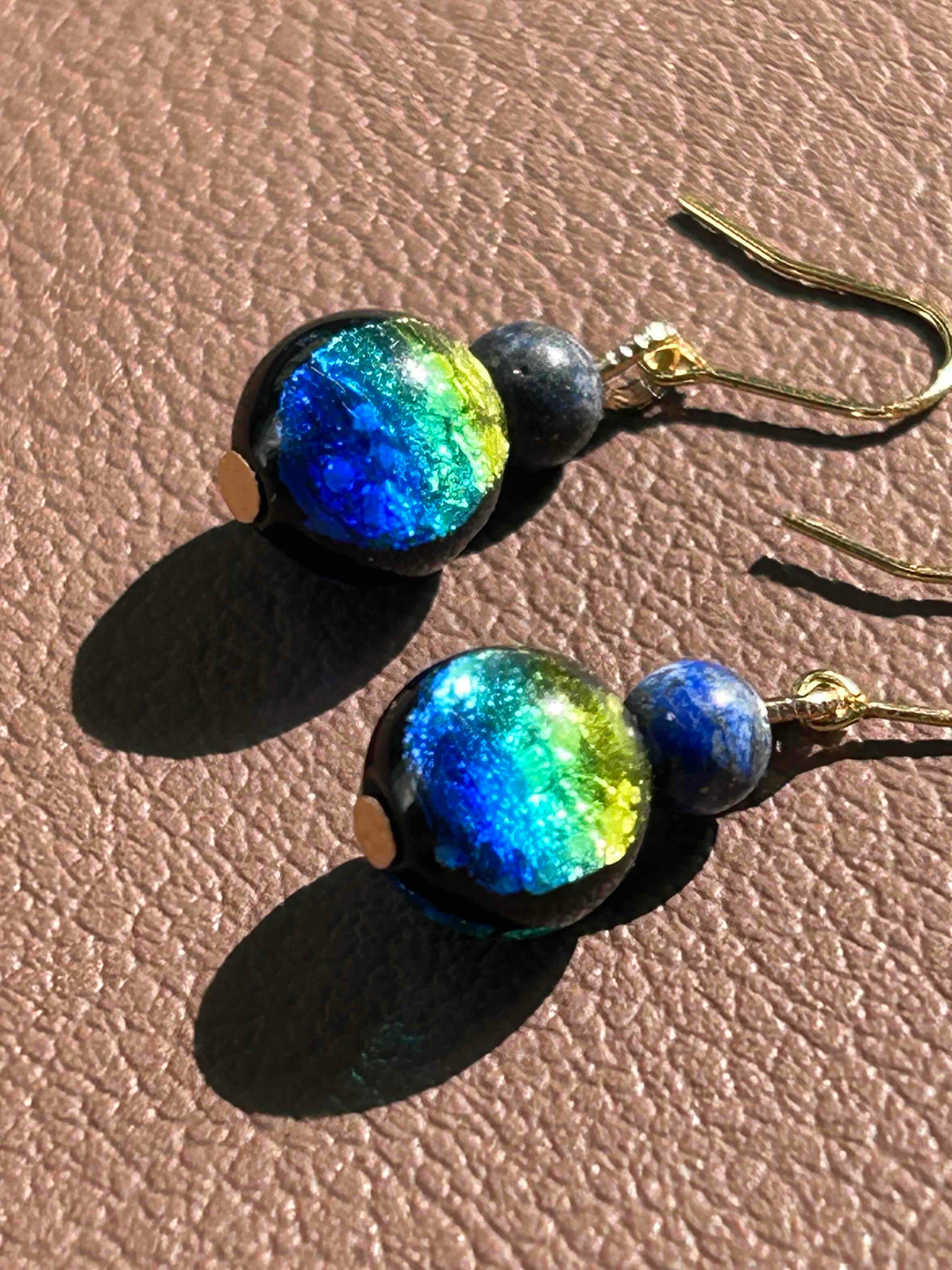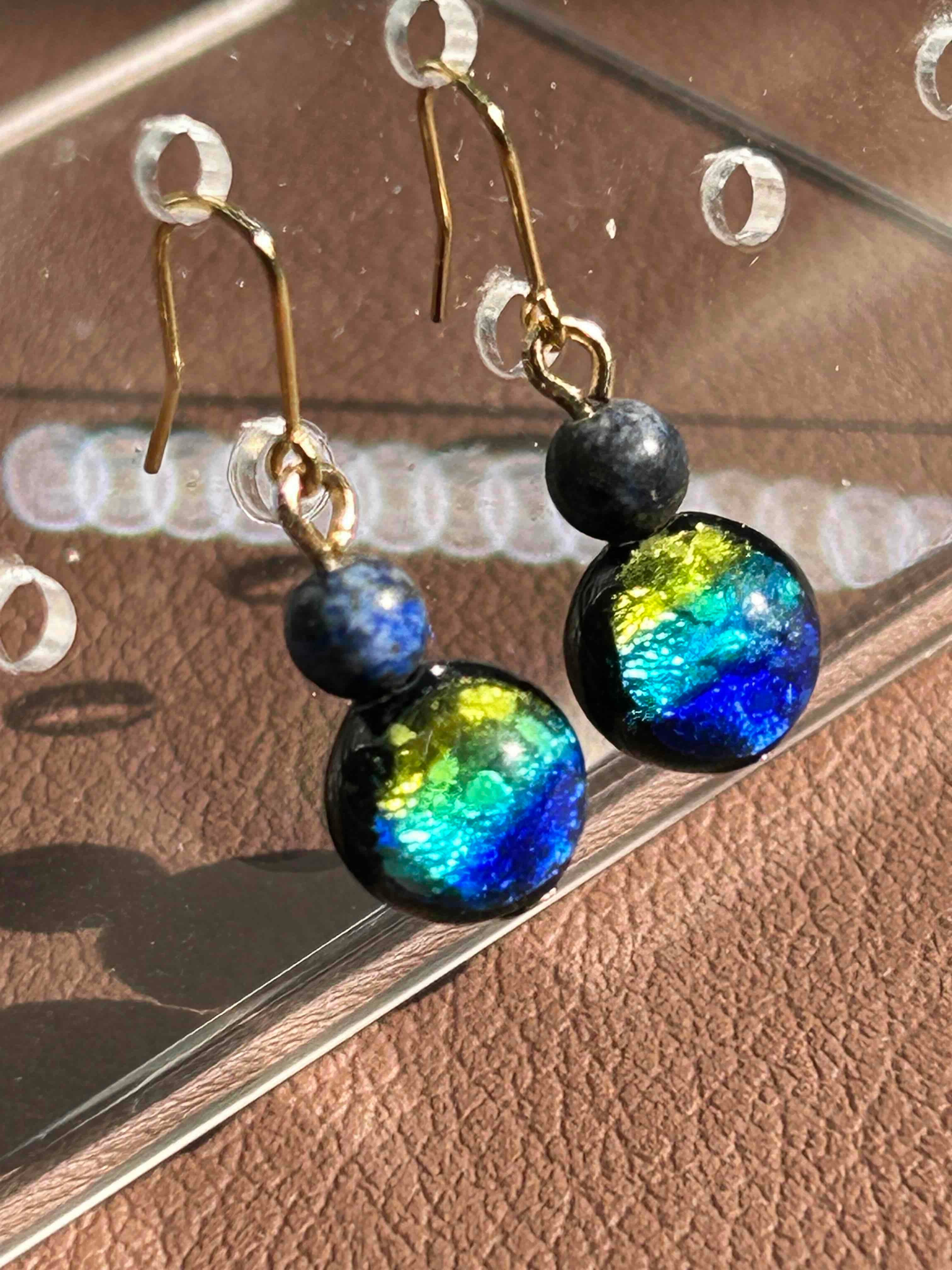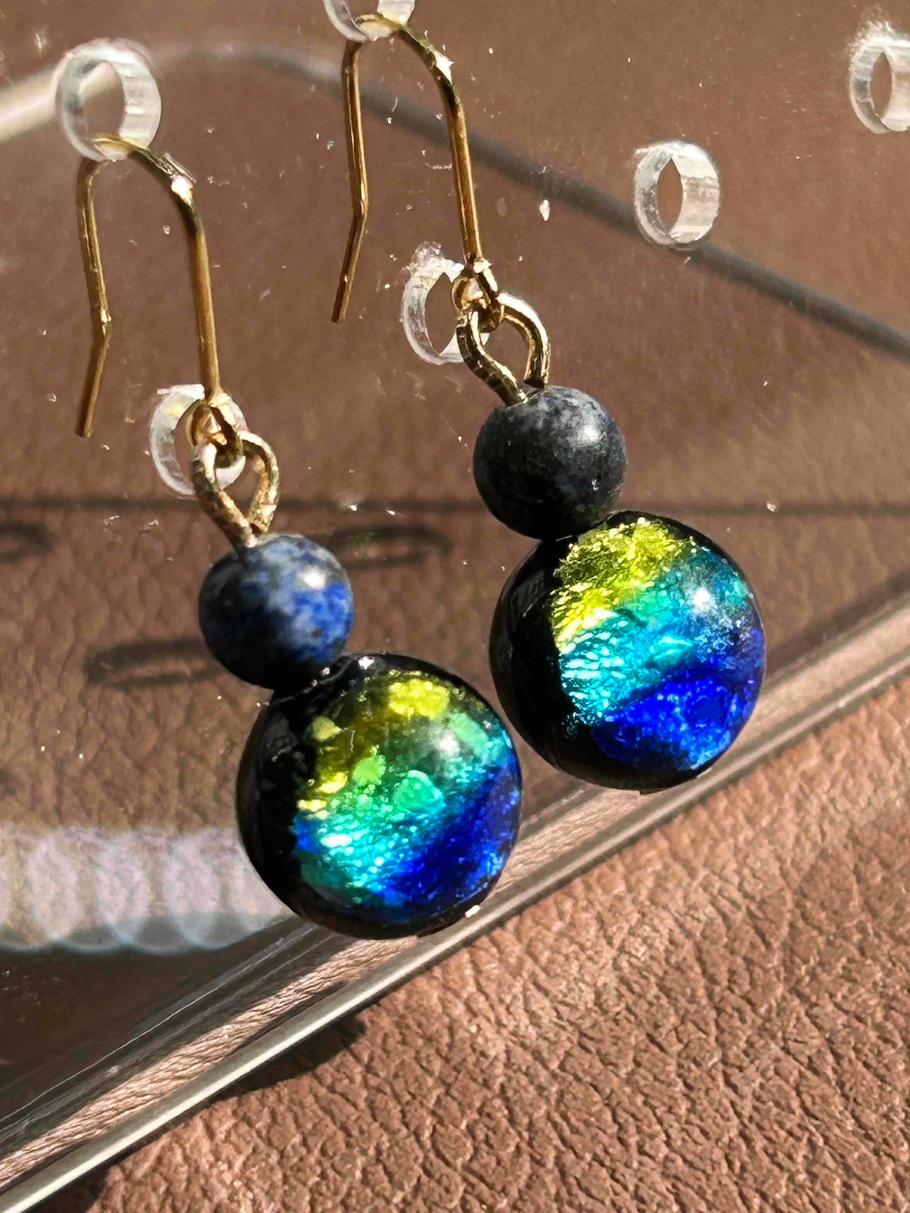 【ケラママリン】 蓄光ホタルガラス ピアス サージカルステンレス